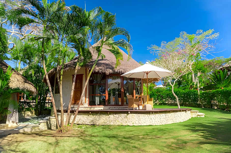 Ready for a sunlit escape, this Jimbaran hideaway invites travelers to lounge on the private beach, sip a drink at the bar, and drift between private pool moments and tropical garden views.